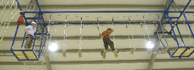 “无拘无束,全新保护”吸顶拓展训练步道系列采用:利用场馆顶部空间"设计原则,彻底解决拓展训练架在场馆室内安装“场地面积浪费大”的问题,不占用场馆地面空间,满足场馆多用途。让拓展训练真正成为一项面向大众的户外体验休闲运动。