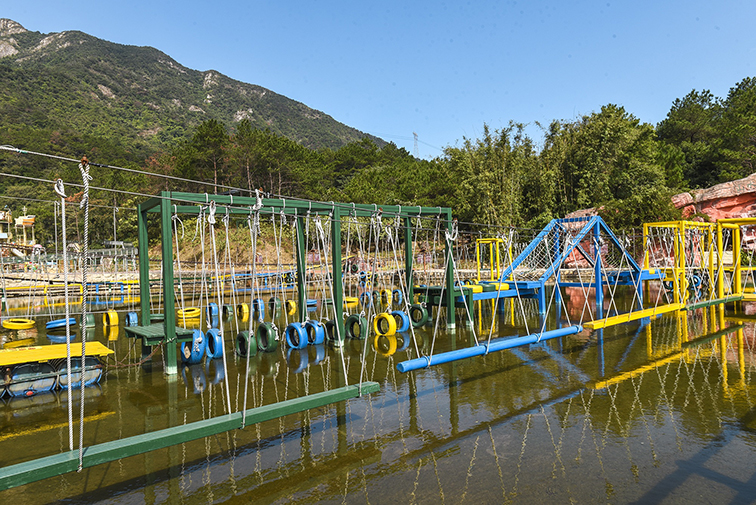 游客可组队挑战一系列障碍关卡,在晃荡的轮胎吊桥中锻炼平衡感,在浮筒栈道上考验协作力,全程兼具趣味性与拓展性,适合亲子家庭、团建团队及年轻游客。设备采用防腐钢结构与耐磨浮材,全模块缓冲减震,搭配浅水域设计,安全系数高,适配全年龄段人群,适合安置在郊野营地、山地景区、生态农庄等场景,既能作为亲子互动、团建拓展的核心项目,也能凭借山野间的独特体验成为网红打卡点,带动客流与话题传播。