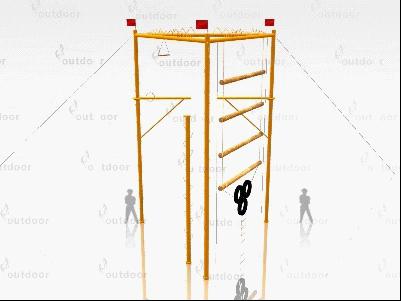 本套拓展器材从心理学角度入手,从天梯之间的距离、器械总体高度等方面都做了非常严密的设计,使其更加符合人的心理规律;从器械学角度来看,该设备做了组合型设计,减少了占地面积;