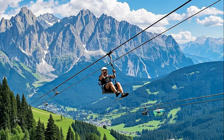 这是一款依托雄伟高山峡谷地貌打造的高空滑索设备,超长钢索横跨于巍峨雪山与翠谷森林之间,视觉上如一条银线连接天地,带来极强的震撼感。游客穿戴专业安全装备后,从高处顺势滑行,可体验御风飞行的失重感与速度感,同时 360° 饱览雪山群峰、层叠森林与山谷村落的全景,实现 “刺激探险 + 极致观景” 的双重体验。设备采用专业级耐磨钢索、五点式安全带与多重缓冲装置,搭配定期安全检测机制,全方位保障游玩安全。适合安置在山地探险景区、高山度假区等拥有开阔视野的场景,既能作为网红打卡点吸引年轻探险爱好者与观景游客,也能成为景区的标志性游乐项目,带动客流与话题传播。
