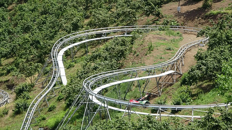 这是一款依托山林地形打造的无动力原子飞车游乐设备,银色的钢结构轨道如原子轨迹般蜿蜒穿梭于茂密林间,高低起伏的弯道与俯冲段设计,让视觉与体验感双重拉满。游客乘坐专业滑车,仅依靠地形坡度即可沿轨道高速滑行,在林间穿梭中感受离心力与俯冲失重的刺激,全程无需电力驱动,还原最纯粹的山野追风体验。设备采用耐磨防滑的轨道与专业级安全滑车,搭配五点式安全带与防脱轨装置,安全员全程值守,安全系数高,适配全年龄段游客。适合安置在山地景区、丛林营地、亲子乐园等场景,既能凭借 “林间飞梭” 的独特体验成为网红打卡点,也能作为山地探险的核心项目,吸引年轻游客与家庭客群,带动景区客流与话题传播。